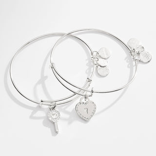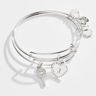 Pavé Key to Love Charm Bangle Bracelets, Set of 2