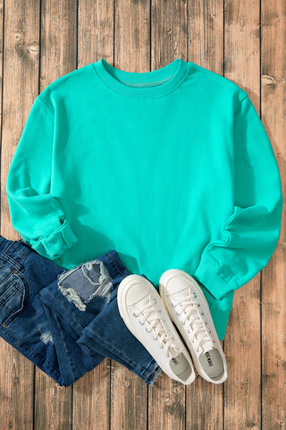 Aruba Blue Solid Fleece Lined Drop Shoulder Terry Sweatshirt
