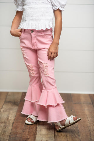 Light Pink Layered Ric Rac Cap Sleeve Frilled Neck Blouse