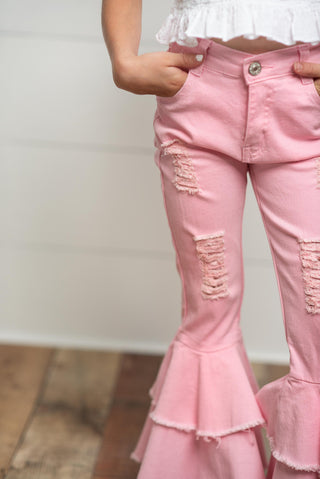 Light Pink Satin Knot Accent Shirt and Ruffled Pants Lounge Set