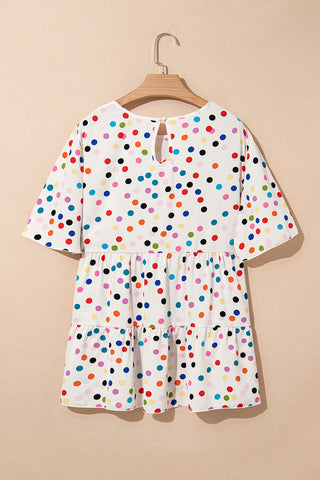 Beige Colorful Polka Dot Print Short Sleeve Ruffled Plus Size Babydoll Blouse