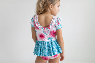 Rose Red Tie Shoulder Floral Print Cute Tankini Set