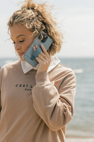 Sky Blue Stripe Oversized Contrast Trim Pullover Sweatshirt