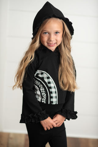 Black Ruffled Wide Leg Pull On High Waist Pants with Pockets