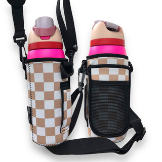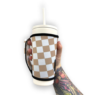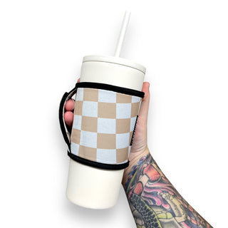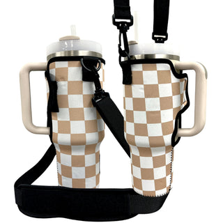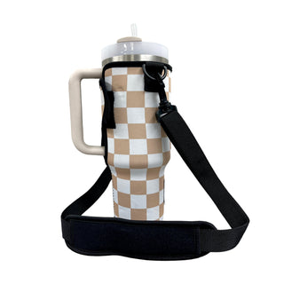 Tan Checkerboard 30-40oz Tumbler Handler™ With Carrying Strap