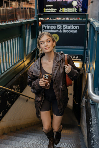 Chestnut Corded Knit Long Sleeve Top and High Waist Shorts Set