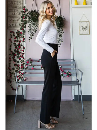 Women's Flare Dress Pants with Side Waist Band and Pocket- MULTIPLE COLORS
