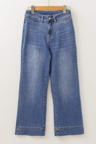 Ashleigh Blue Mineral Wash High Waist Bell Bottom Crop Jeans